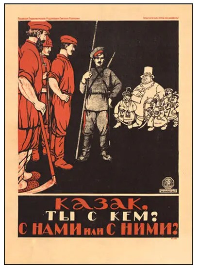 Dmitrii Stakhyevitch Orlov (Dmitrii Moor) was born in 1883 in Novocherkassk, Southern Russia. He took an active part in the 1905 Revolution and was thrown out of law school. He started drawing for a satirical magazine in 1907. In 1919 he painted trains delivering agitational propaganda across Russia during the Civil War. During 1919 and 1920 he produced over fifty posters including 'Cossack, which side are you on?'.