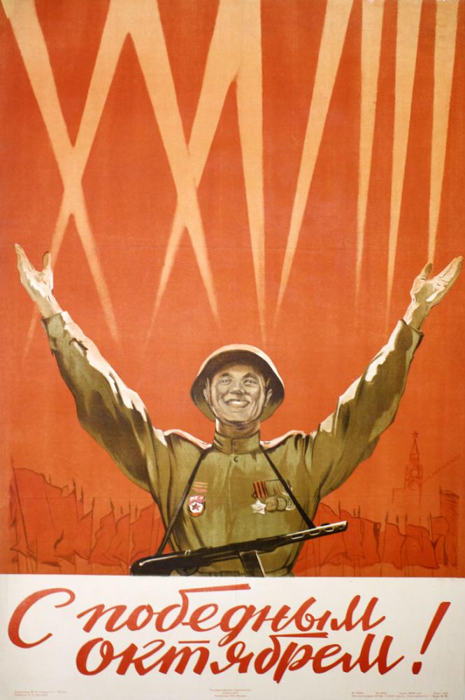 Created for the 28th anniversary of the October Revolution: "Congratulations on a Victorious October!", 1945